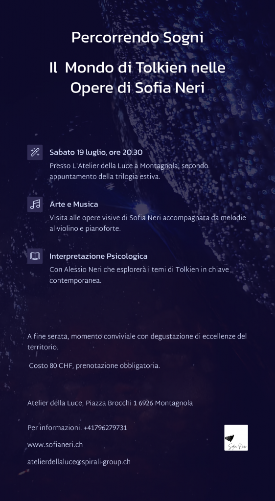 Un viaggio straordinario tra universi paralleli dove l’arte visiva incontra la fantasia letteraria in un dialogo affascinante e inedito. L’Atelier della Luce presenta la seconda tappa della trilogia estiva, un’esperienza multisensoriale che fonde le opere visionarie di Sofia Neri con l’immaginario immortale di J.R.R. Tolkien.
