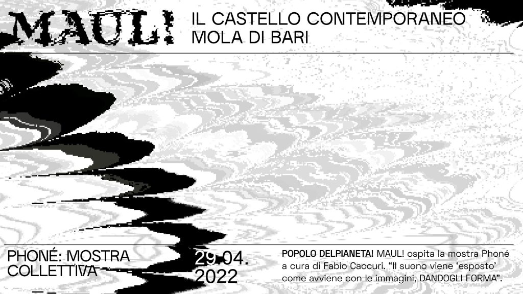 Venerdì 29 aprile dalle ore 20:00 si inaugura PHONÉ, la mostra collettiva a cura di Fabio Caccuri, organizzata da Officina dell’Arte APS all’interno del MAUL! - il Castello Contemporaneo di Mola di Bari, che sarà aperta al pubblico fino al prossimo 22 maggio.