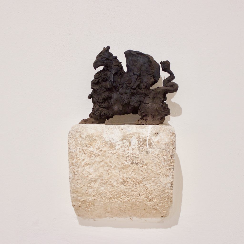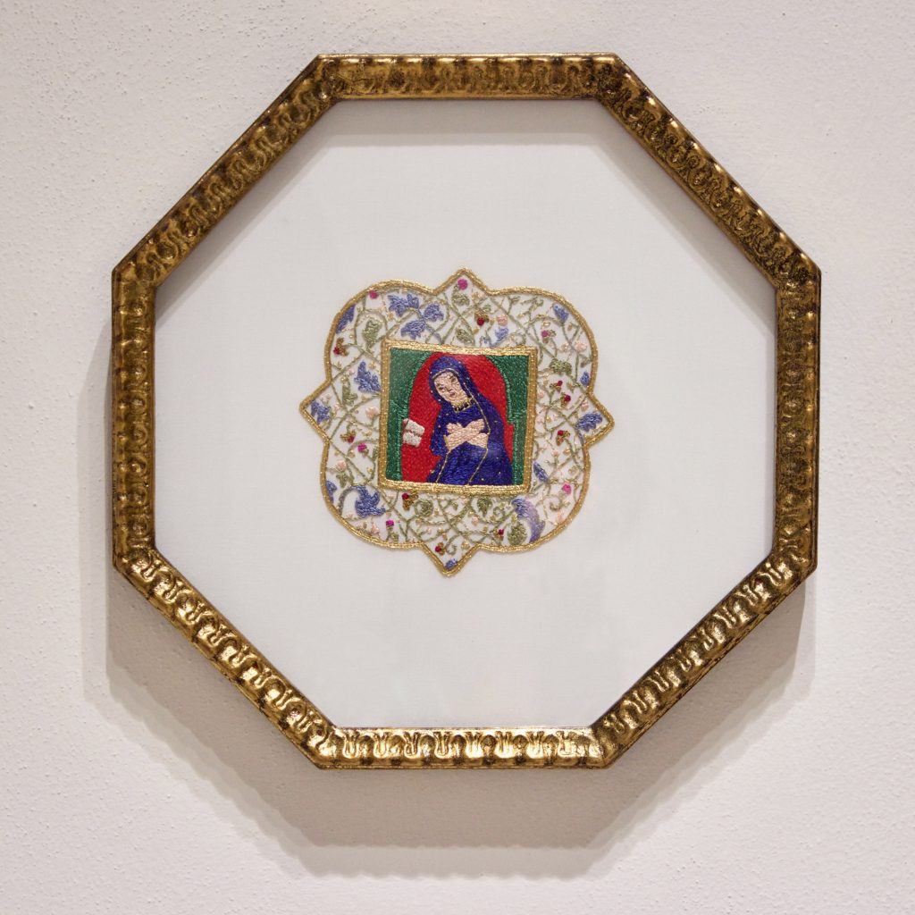Il cammino si estende verso il paesaggio urbano della città di Altamura con l’artista Giulia Gazza che porta il suo peregrinare nel cuore pulsante della città antica: la Cattedrale di Santa Maria Assunta. L’errare si trasforma in un’esplorazione del paesaggio antropico alla scoperta delle figure scolpite sul portale in pietra del duomo. Il particolare architettonico della Vergine viene restituito attraverso il ricamo in un’antica tecnica di origine anglosassone. L’unione delle due pratiche artistiche origina un connubio realizzato da Romanelli a protezione dell’intero lavoro, un grifone alato.