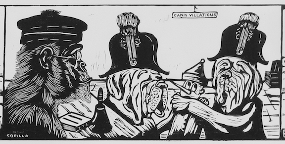 Sei xilografie di 30 cm per due metri, sono incisi tutti gli animali che incontra Pinocchio nella sua storia di burattino
