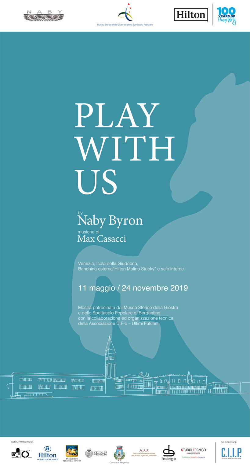 Dall’11 maggio al 24 novembre 2019, nel cuore di Venezia, all’interno della suggestiva e prestigiosa cornice dell’Hotel Hilton Molino Stucky affacciato sul Canale della Giudecca, sarà presentata dal Museo Storico della Giostra di Bergantino l’installazione “Play With Us” Dall’arte popolare all’arte moderna con opere dell’artista Naby Byron e texture musicale di Max Casacci dei Subsonica, a cura del Prof. Gian Paolo Borghi, etno-antropologo ed esperto di tradizioni popolari.