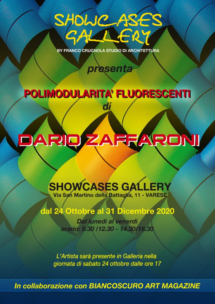 DARIO ZAFFARONI, artista del panorama contemporaneo, espone una serie di lavori denominati “POLIMODULARITA’ FLUORESCENTI” alla Showcases Gallery a Varese fino al 31 dicembre 2020.