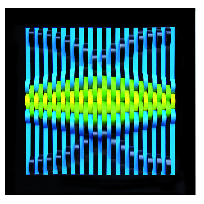 Dario Zaffaroni è un’artista raffinato, che ha scelto negli anni, un campo preciso di intervento: la percezione visiva dell’iterazione cromatica, attraverso l’accostamento e l’intersecazione di nastri e moduli cromatici a gradiente fluorescente che danno come risultato fenomeni percettivi sempre differenti. Le opere cromo-cinetiche di Zaffaroni, stimolano lo spettatore a muoversi intorno all’opera, al fine di godere della modalità della visione più completa, ed a riflettere sulla situazione percettiva proposta, sempre diversa, ma sempre emotiva.