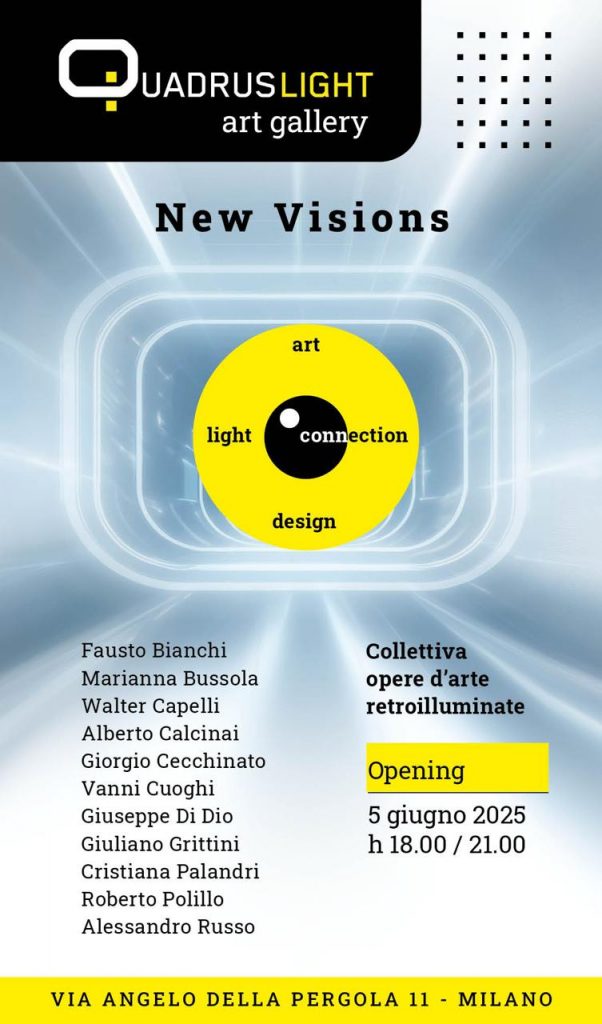 Nella galleria, Quadrus light, di Via Angelo della Pergola 11 l’arte incontra la tecnologia, dando vita a un’esperienza percettiva che si trasforma con la luce: ogni variazione d’intensità luminosa restituisce nuove letture e suggestioni alle opere in mostra, rendendo ogni visione irripetibile. A entrare a far parte della squadra di Quadruslight :Fausto Bianchi, Marianna Bussola, Walter Capelli, Alberto Calcinai, Giorgio Cecchinato, Vanni Cuoghi, Giuseppe Di Dio, Giuliano Grittini, Cristiana Palandri, Roberto Polillo, Alessandro Russo.