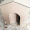 Una casa e una catena costruite di cartone, l’unico materiale che l’artista è riuscito a reperire.