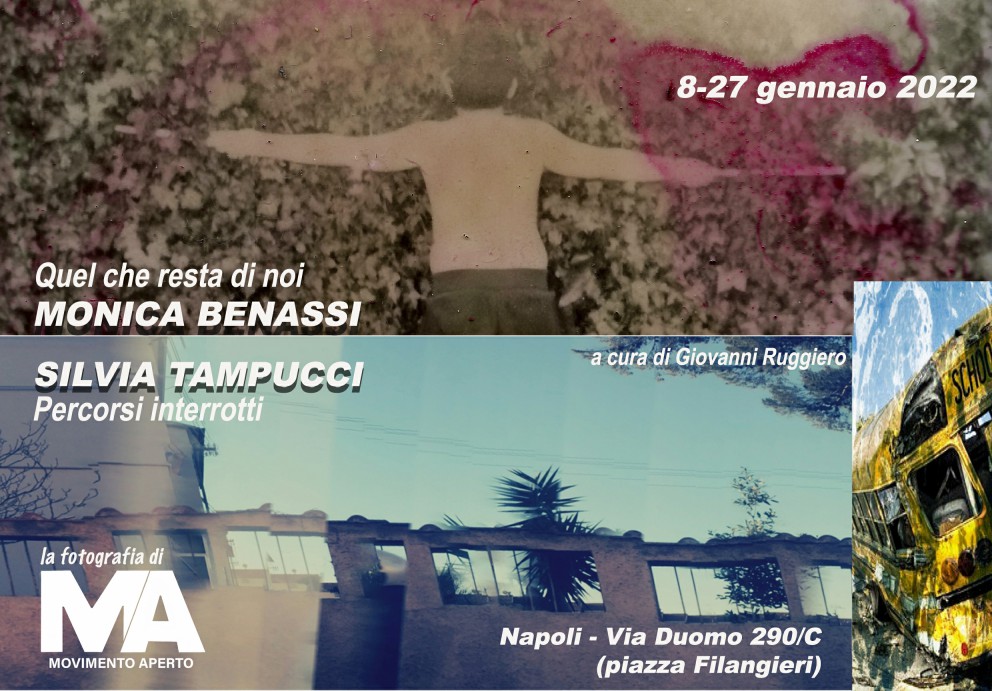 Due personalità si confrontano e s’incontrano nello spazio espositivo di Ilia Tufano, MOVIMENTO APERTO. Monica Benassi e Silvia Tampucci presentano due progetti fotografici, rispettivamente “Quel che resta di noi” e “Percorsi interrotti”. Le accomuna il senso della sintesi quasi grafica e un pessimismo iniziale che però lascia speranze. Lo sguardo ecologista di Monica Benassi è allarmante tanto da chiedersi quale possa essere il nostro futuro.Con “Percorsi interrotti”, invece, Silvia Tampucci, presenta una metafora della vita, il suo scorrere, le sue piccole fermate e gli intoppi. Anche Silvia Tampucci è una fotografa aperta alla sperimentazione. Prova ne è questo lavoro che nasce nel 2016. Rompe i tabù e lascia a casa la reflex per mettere mano allo smartphone. La visione è ampia, distesa, come lo scorrere della vita. Sulle visioni orizzontali applica poi immagini tratte da internet, libere da vincoli, che rappresentano l’elemento verticale, quell’imprevisto, appunto, o quegli intoppi che interrompono il fluire dell’esistenza.