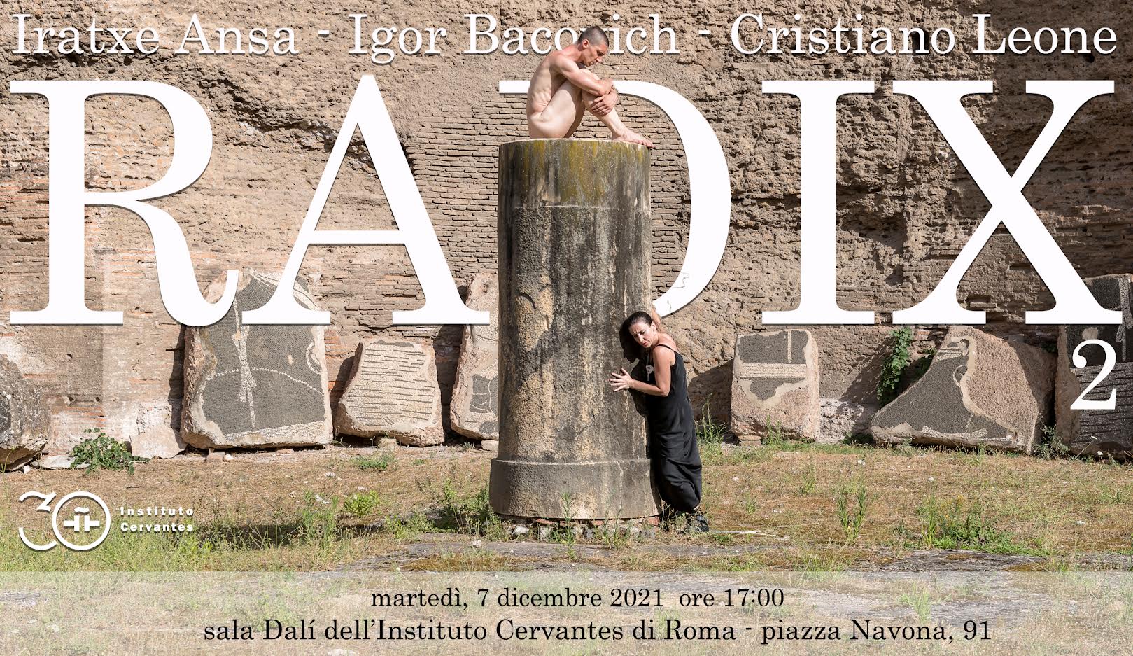 Danza contemporanea e patrimonio culturale: RADIX 2, la prima romana del progetto audiovisivo diretto da Cristiano Leone, con i pluripremiati coreografi e danzatori Iratxe Ansa e Igor Bacovich, è in programma martedì 7 dicembre all'Instituto Cervantes. Il video girato girato alle Terme di Caracalla è ispirato e dedicato alle opere di Rafael Alberti e María Teresa León.