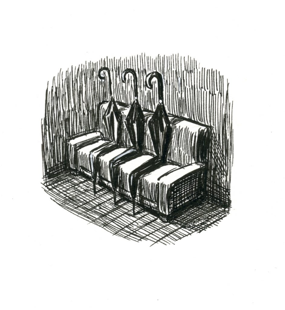 Ho dimenticato l’ombrello, Vanvere edizioni 2019, disegni per la rivista “L’Indice”, copertine e schizzi preparatori, tutti sul tema dell’ombrello.