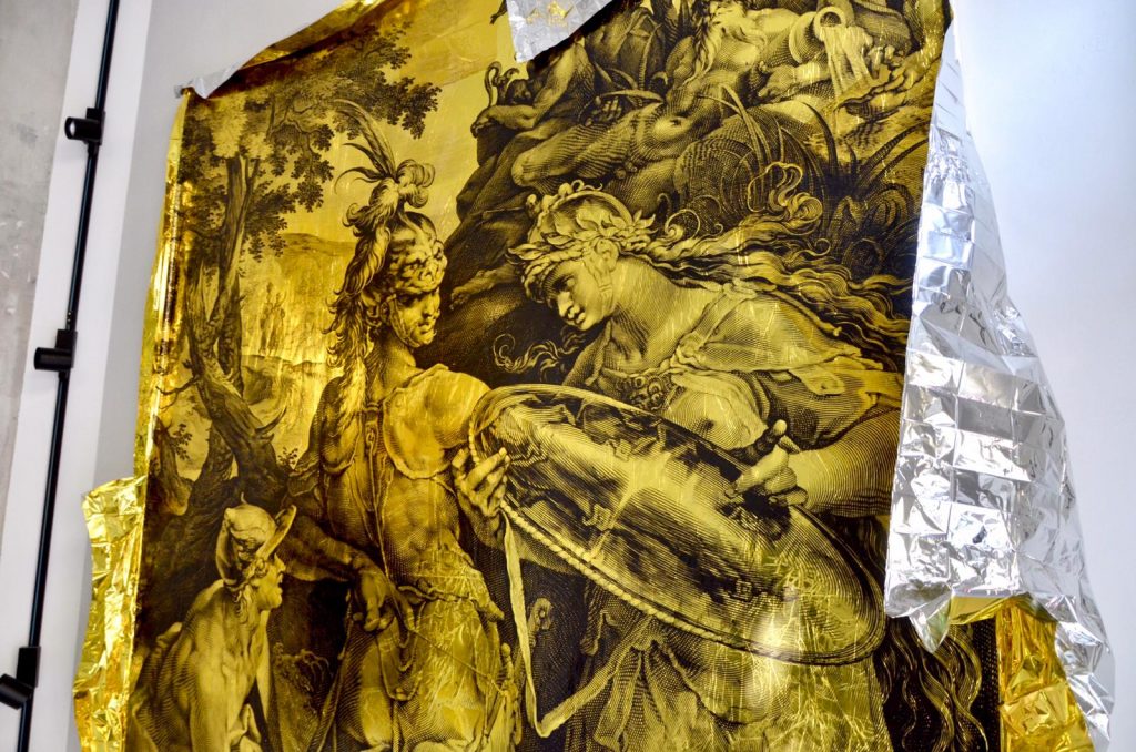 Visivamente l’installazione si presenta come un accumulo di coperte isotermiche sospese, un serpente dorato che si snoda per la lunghezza dello spazio espositivo sino alla sua origine: una videoproiezione di pochi secondi del volto di Balla. Un sovrapporsi di sensazioni che in pochi istanti suscita l’empatia dello spettatore nei confronti del ragazzo.