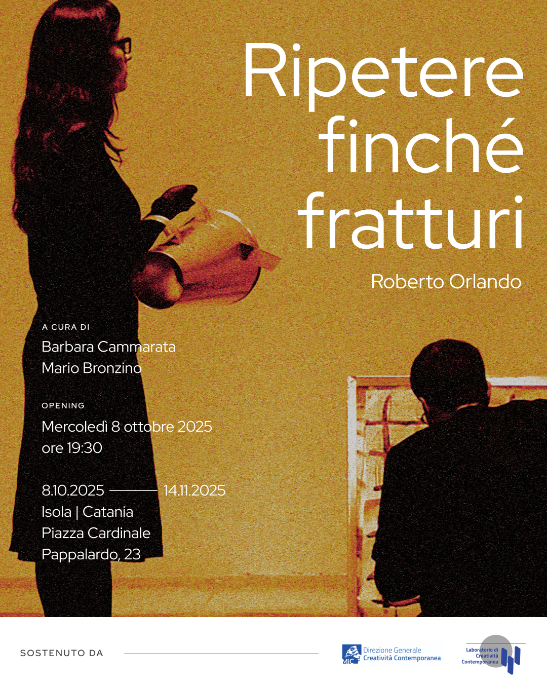 La mostra “Ripetere finché fratturi” di Roberto Orlando, curata da Mario Bronzino e Barbara Cammarata, inaugura l’8 ottobre 2025 presso Isola | Catania. Parte del progetto biennale Coalizioni Isola, l’esposizione esplora l’interazione tra uomo e vegetale attraverso pittura e video, fondendo ricerca scientifica, arte e ecologia. Le opere di Orlando evocano rituali metodici e una nuova etica del gesto, proponendo un futuro in cui l’umano si mette al servizio della natura. La mostra riflette anche sulle fragilità di questa simbiosi, tra memoria, equilibrio e trasformazione.