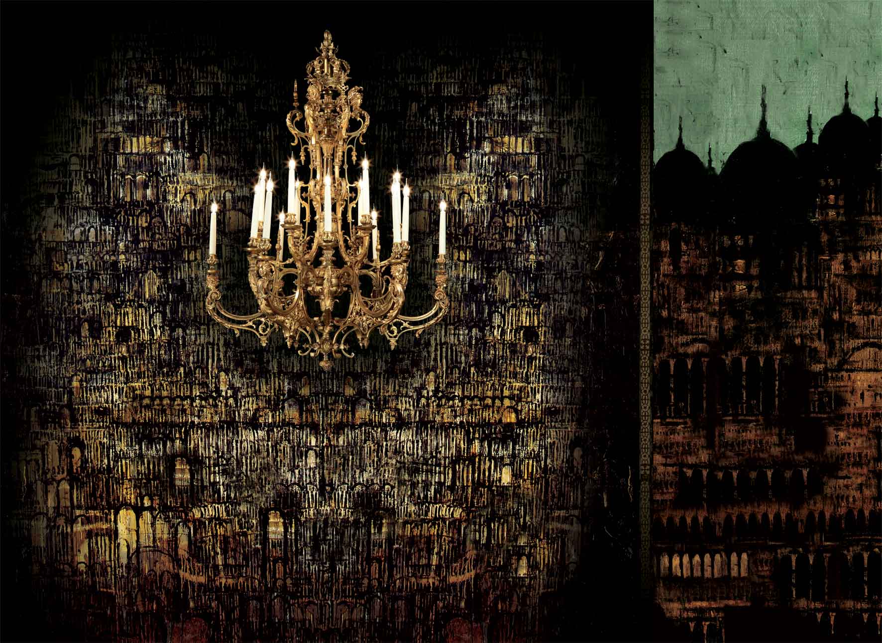 Ambientazioni notturne in spazi chiusi o immaginarie notti stellate illuminate da chandeliers centrali. La notte è il filo d’unione tra il ciclo dei dipinti sensuali e il ciclo degli chandeliers. Nella assenza della luce naturale del giorno, Dudine cerca la luce nella notte. «Solo la notte cupa rivela ai miei occhi le stelle» (Walt Whitman). Attraversare la propria notte, per trovare le proprie luci, sembrano suggerire i suoi dipinti.
