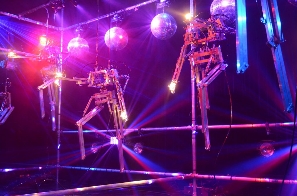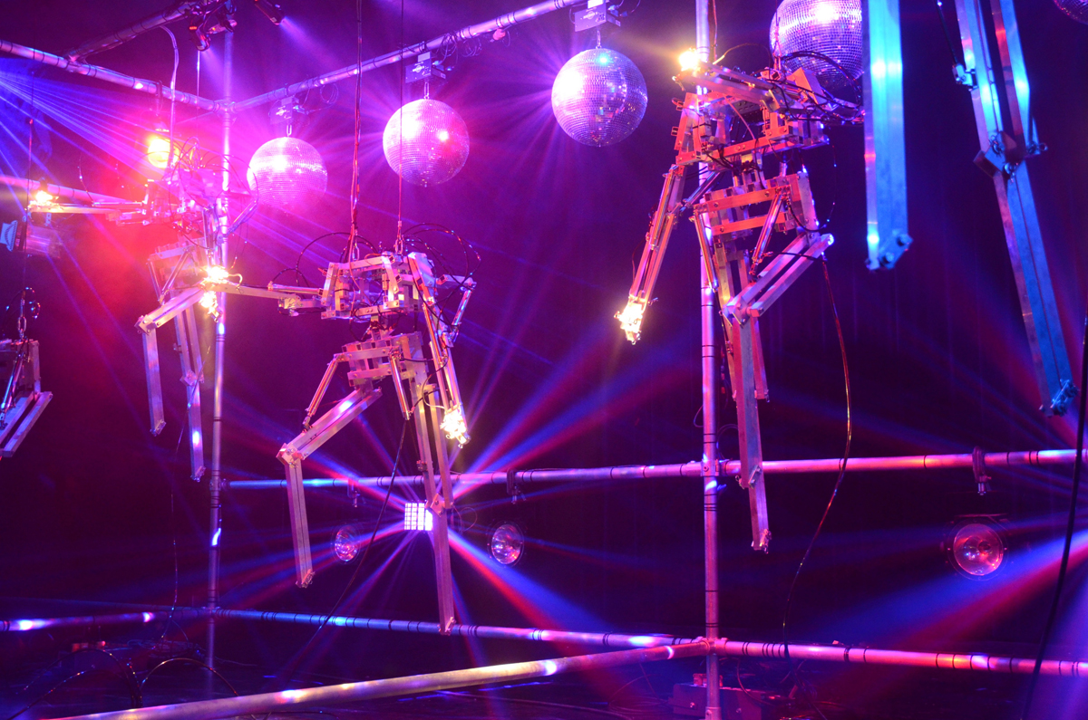 In occasione dell’inaugurazione di sabato 17 e in replica domenica 18 novembre, va in scena in prima mondiale lo spettacolo robotico “Copacabana Machine Sex” di Bill Vorn. Dieci robot danzano, in un tentativo di seduzione tra loro e con il pubblico, e macchine producono musica in un set che mescola il kitsch di Broadway e il look industriale scuro dei suoi più recenti lavori. La performance, che si può definire “burlesque meccanica”, non vuole replicare un vero night club, bensì generare una stravaganza metaforica che risponda alla domanda: cosa accadrebbe se le macchine si trovassero sul palco di un cabaret?
