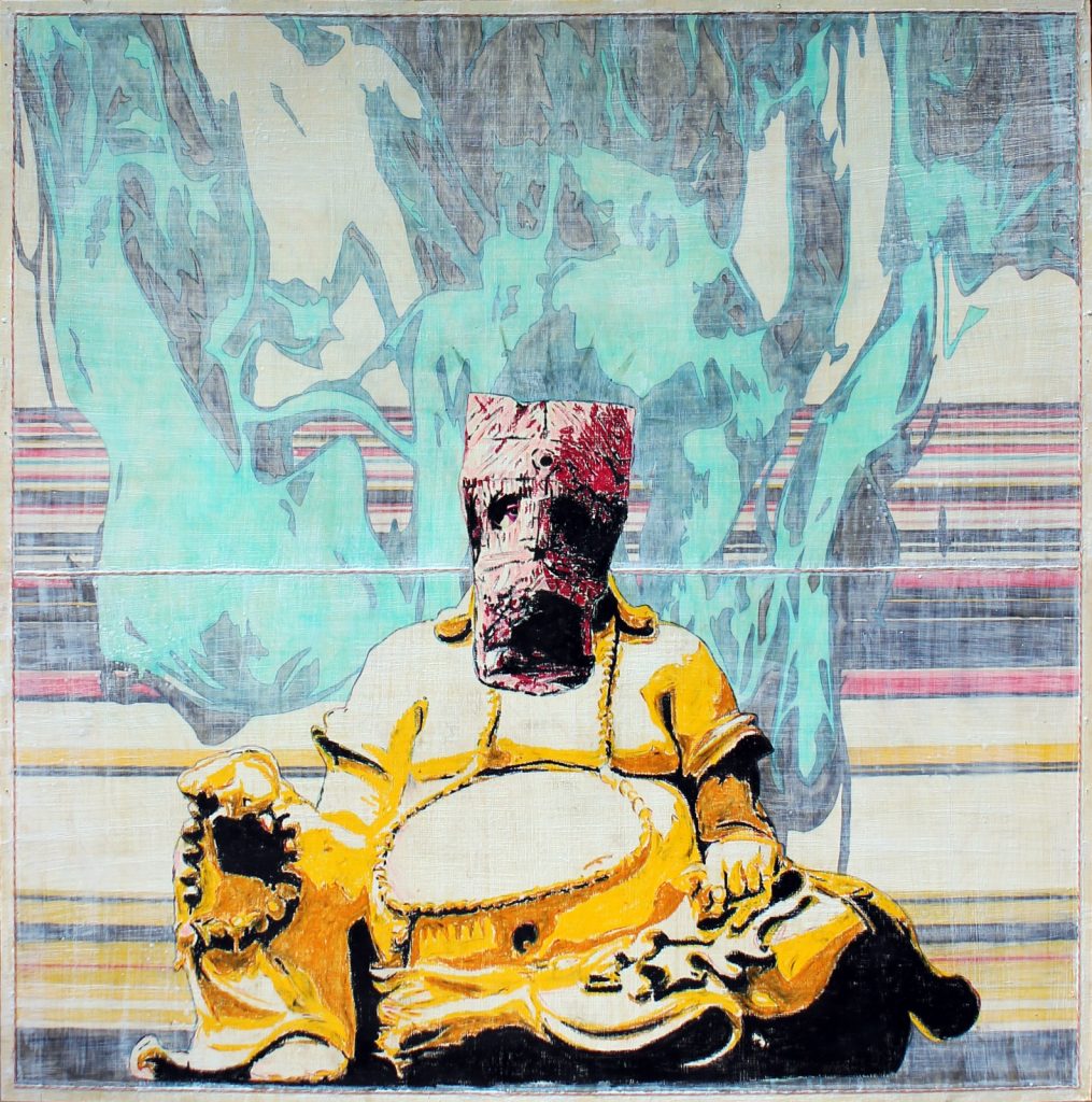 La mostra raccoglie anche una serie di particolari sculture, realizzate con diversi materiali trattati in modo sperimentale, tra cui cemento, ferro e resina, raffiguranti un uomo stilizzato in colori vivaci, anch’esso con il volto coperto. Gli Zuki di De Ranieri sono simboli di un’umanità ingabbiata tra il desiderio di apparire e quello di nascondersi, tra immagine virtuale raccontata sui social e personalità reale, più difficile da esprimere. Ne emerge un’analisi ironica, irriverente e non impegnata del nostro tempo, che porta a riflettere sul nostro rapporto con la nostra identità più profonda.