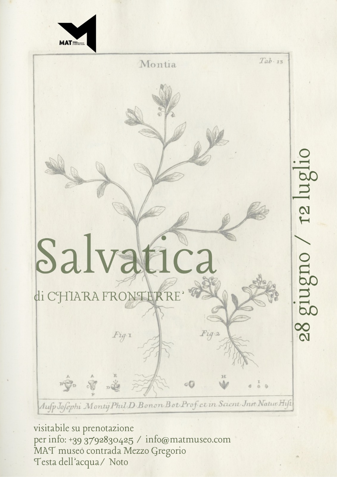La mostra "Salvatica" verrà presentata da Luana Aliano nell'ambito dell'iniziativa organizzata dal Mat "Un viaggio tra majarie, rituali e suoni ancestrali". Il programma della giornata prevede alle 18:30 "Tra l’Acqua di San Giovanni, le erbe ed i falò" con Paolino Uccello, alle 20 l'inaugurazione della mostra di Chiara Fronterrè con la performance dal vivo "Soundscapes", un viaggio tra paesaggi sonori che parlano di radici, linfa, respiro e ritmo.