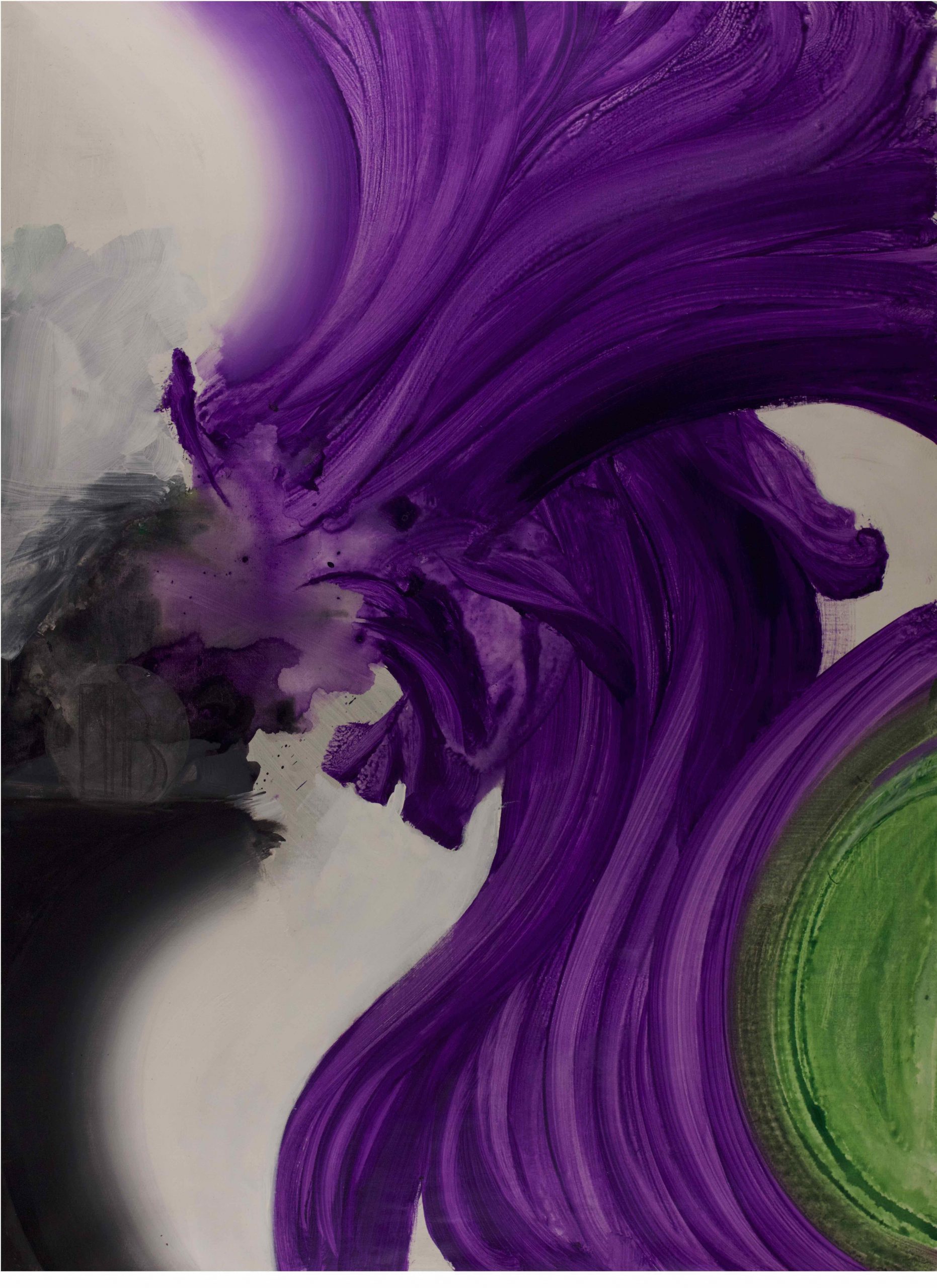 Le quindici opere su tela e su teloni PVC riciclati provenienti dalle pubblicità dismesse, dominate soprattutto dal verde e dal viola sacrale, rappresentano invece la parte tangibile della mostra. Titoli come Università Immateriale di estrema Sapienza invitano a riprendere possesso della nostra immaginazione, senza la quale, sempre più, l’uomo si allinea al pensiero comune perdendo la propria indipendenza e umanità.