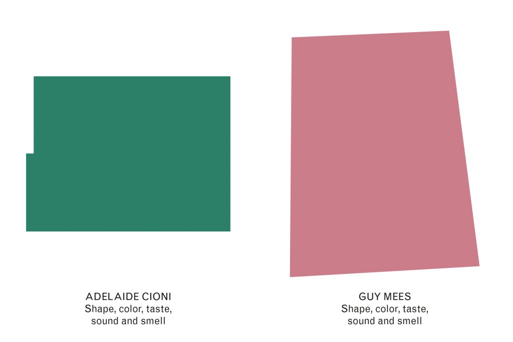 li, i lavori dei due artisti sono presentati in maniera monografica nel- le due sale della galleria in due distinte mostre dallo stesso titolo: Shape, color, taste, sound and smell.
