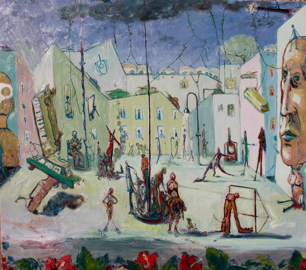 Le opere hanno come filo conduttore la caparbia volontà di non desistere superando la solitudine e il vuoto che questo periodo ci ha lasciato. Simbologie e soggetti emblematici, come un abat jour o un bagno, oggetti che appartengono alla nostra “vita d’interno”, paesaggi urbani deserti, contrapposti alle affollate feste di paese, diventano un messaggio di forza per tutti noi, un invito a esorcizzare l’angoscia e a generare stati d'animo positivi nella speranza di una imminente ripartenza.