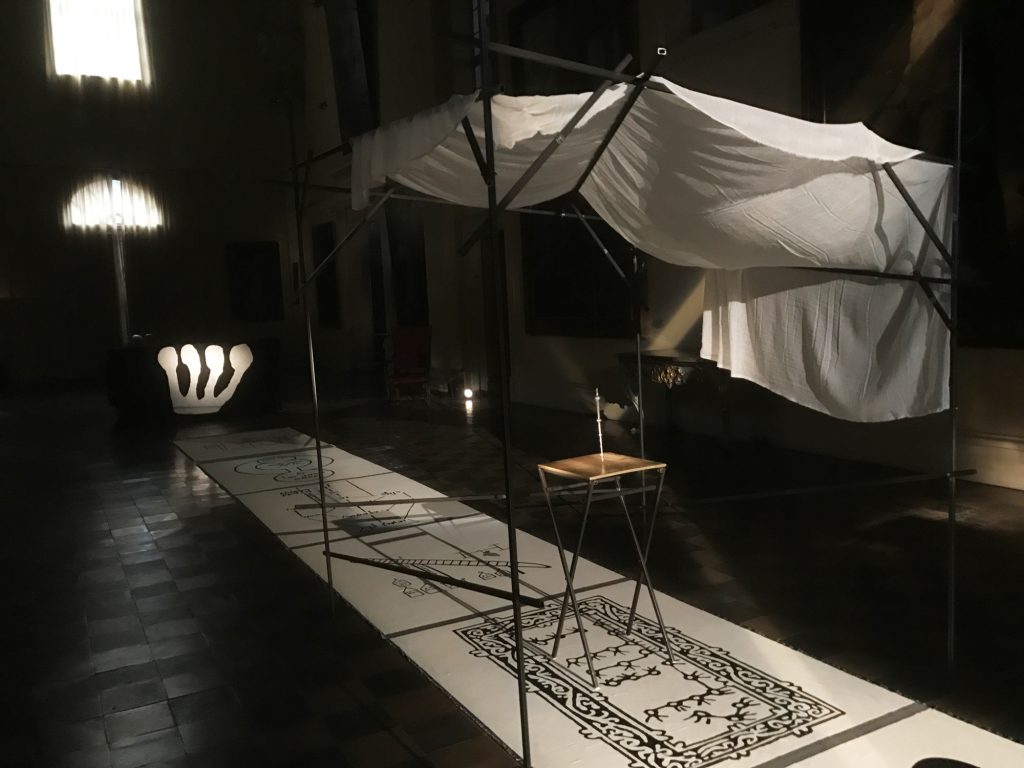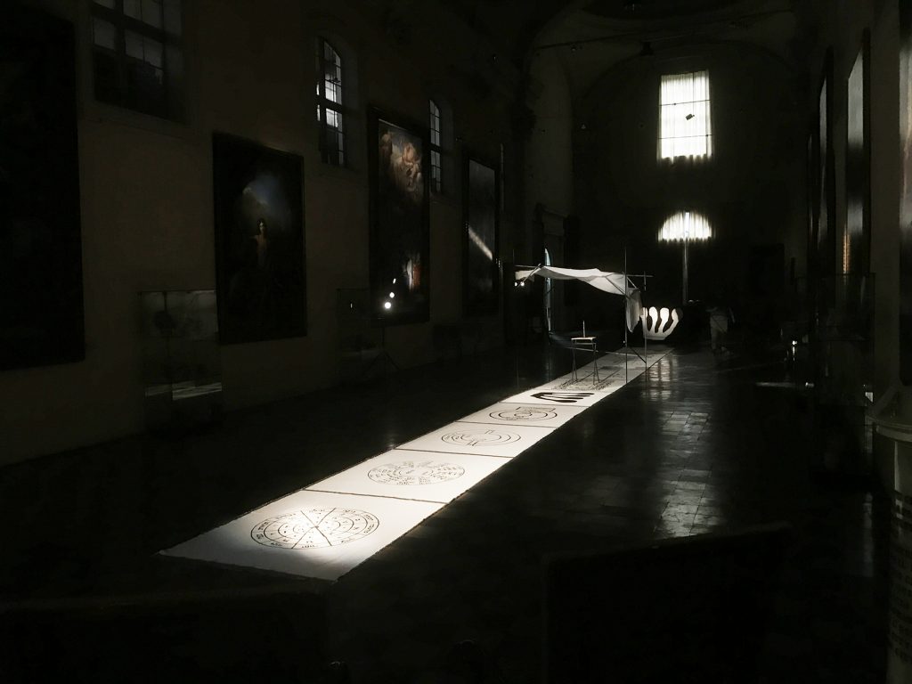 Il progetto vede la creazione di un'installazione architetturale site-specific all'interno del Palazzo del Merenda (Corso della Repubblica 72, Forlì). Tappeti ricamati, oggetti rituali, installazione sonora, stendardi, sentieri di luce, leggere architetture, concorrono alla creazione di uno spazio immersivo e sensoriale. Il luogo è il Salone centrale della Pinacoteca civica che viene così interamente dedicato all'opera. Il grande spazio ospita tele di ampie dimensioni del Seicento. Shul entra così in relazione con le opere di Guido Cagnacci e del Guercino collegandole alla nuova opera attraverso l'uso particolare della luce.