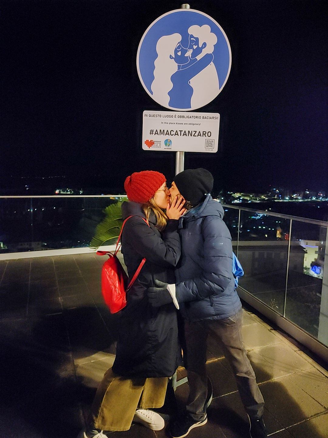 L’invito a baciare la persona amata nel punto più panoramico di Catanzaro vuole essere un invito all’amore in tutte le forme e contro qualsiasi pregiudizio. L’idea è quella di rendere il visitatore parte del magnifico paesaggio che abbiamo la fortuna di avere in dote; un bacio in questa splendida cornice deve poter esprimere anche l’amore per la propria terra.