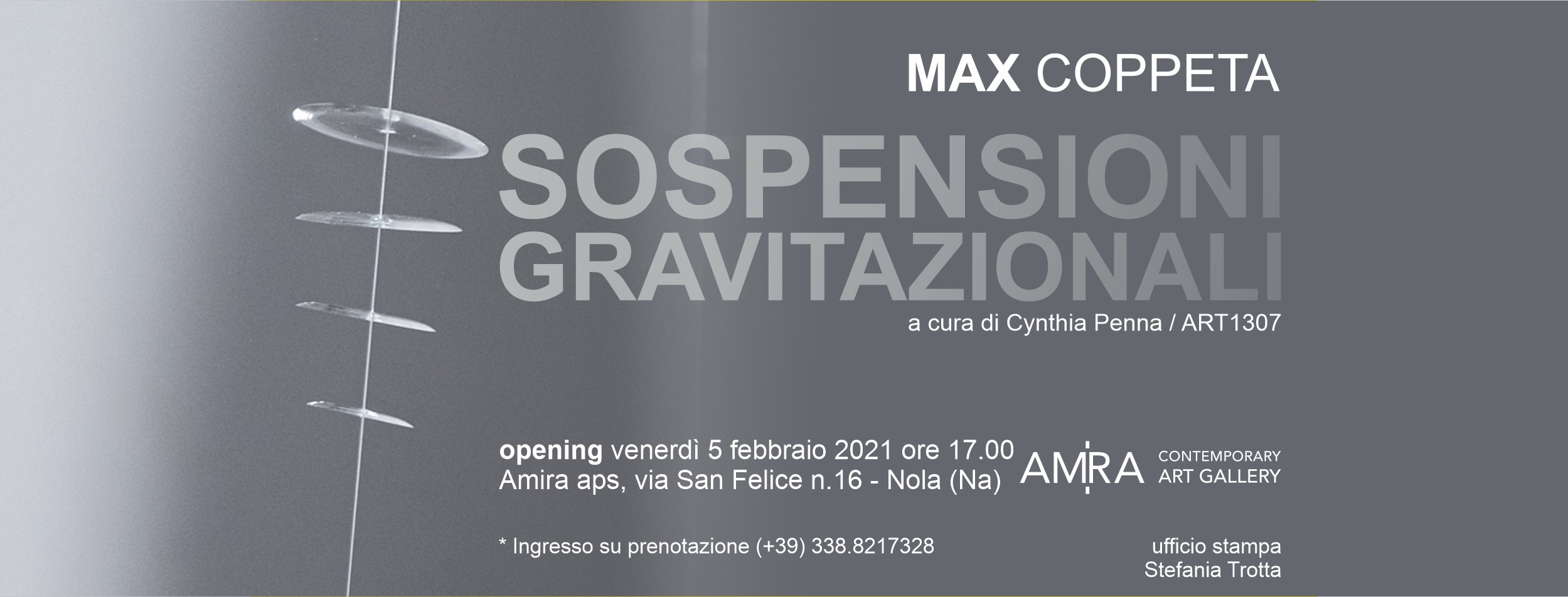 Venerdì 5 febbraio 2021 alle ore 17.00 presso Amira Art Gallery in via San Felice n.16, Nola sarà inaugurata la personale di Max Coppeta a cura di Cynthia Penna / ART1307.