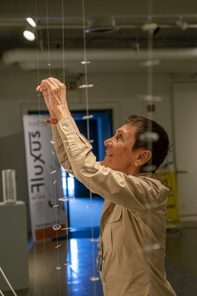 A questi elementi di costruttivismo, arte concreta e cinetismo, l’artista fonde atmosfere teatrali e visionarie, contestualmente rigorose nella forma, che evidenziano quel senso della percezione ora distorta, mutante, irreale e ambigua, destinata a sancire un’attrazione atemporale con la sfera emozionale.