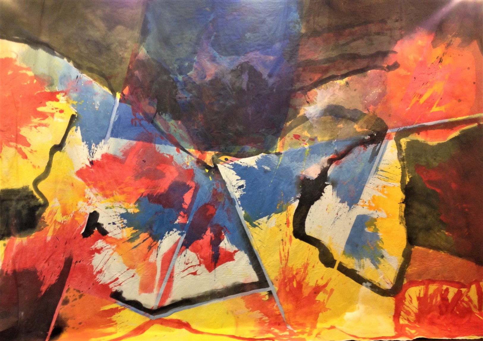 In questa seconda mostra dell’Archivio Studio DR – Spazio Visivo con Mario Martini, José Pelaez, Bobgy, ci soffermiamo su Stefanie Vogel, artista berlinese trasferitasi a Bolzano, una delle prime artiste che ha frequentato la Galleria Studio DR fin dal 2002 con una sua prima mostra. Si ricorda di lei il catalogo della mostra svoltasi a Berlino Est sul tema della guerra. Presto ne metterò qualche estratto sulla mia pagina facebook. I due teli in mostra, dalle dimensioni m.3x4 e m.3x2, sono quelli preparati per l’esposizione svoltasi a via Brunetti 43 insieme ad altri teli delle stesse dimensioni sul tema Espressionismo astratto ed Espressionismo geometrico. Artista volitiva alla quale piace sperimentare anche nel campo figurativo, specie nella ritrattistica.