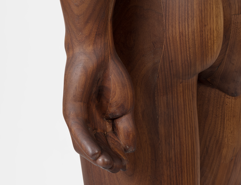 Consistente in un’unica scultura, la mostra è occupata da una figura umana in scala 1: 1 in noce canaletto, scolpita dall’artista, appoggiata a un palo di acciaio inossidabile.