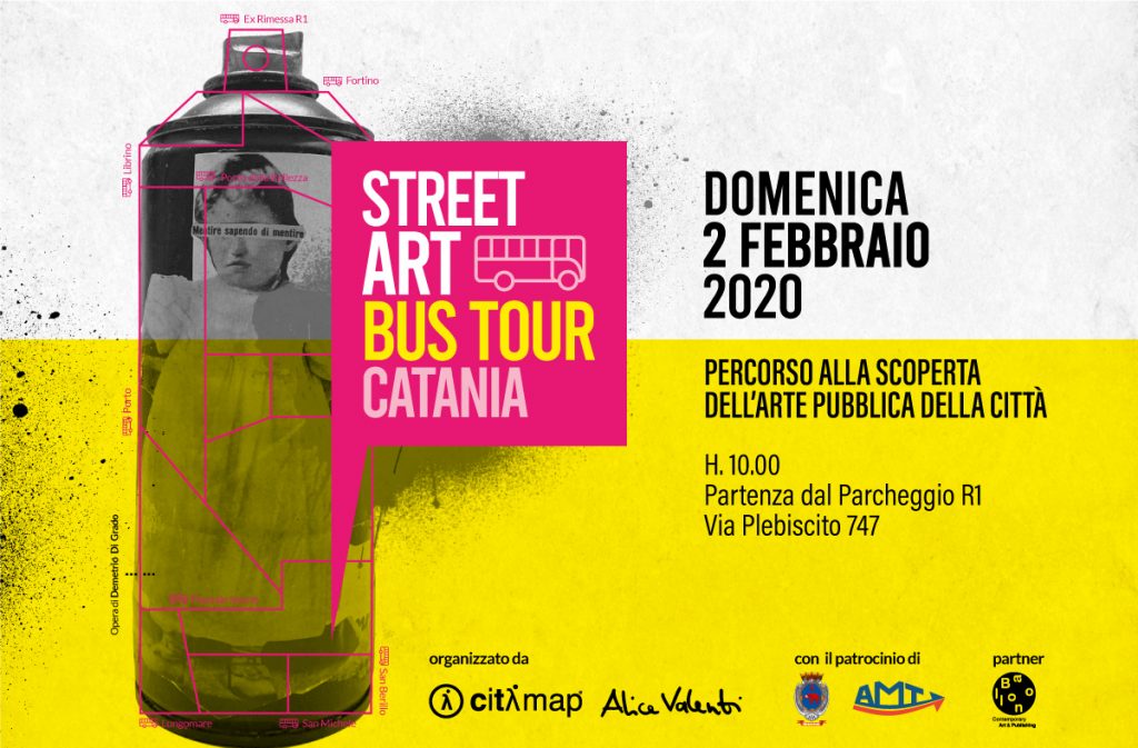 Forti del riscontro positivo che o “Street Art Bus Tour #Catania”, un percorso alla scoperta di alcuni tra i più importanti interventi d’arte pubblica della città, ha avuto lo scorso 12 ottobre, CityMap Sicilia e Alice Valenti hanno richiesto e ottenuto, per il periodo che va da febbraio 2020 a gennaio 2021, il Patrocinio Gratuito e il Servizio Speciale da parte dell’AMT di Catania, il Patrocinio Gratuito del Comune di Catania e l’inserimento dello “Street Art Bus Tour #Catania” all’interno del calendario dell’iniziativa nazionale “Domenica al Museo”.