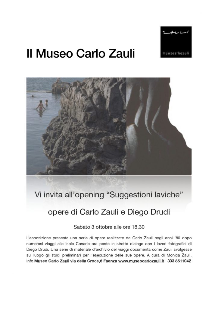 Inaugura al Museo Carlo Zauli di Faenza (Ravenna) sabato 3 ottobre alle ore 18,30 la mostra dal titolo “Suggestioni laviche. Carlo Zauli e Diego Drudi in viaggio nelle Isole Canarie” a cura di Monica Zauli.