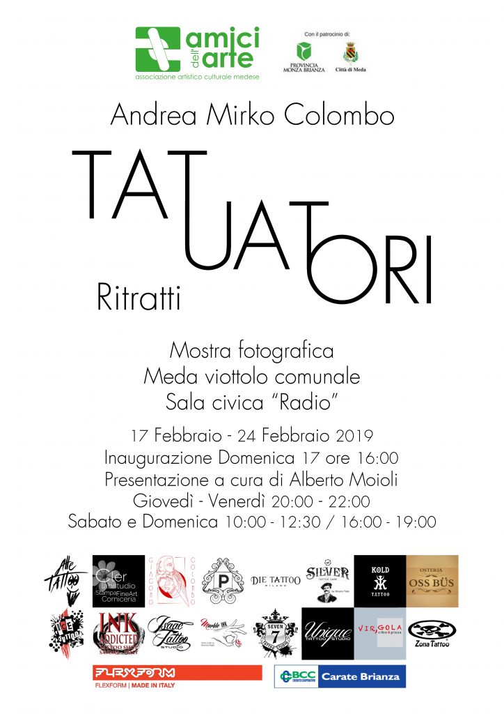 La mostra del fotografo Andrea Mirko Colombo è un evento straordinario e insolito. L’artista ha realizzato una serie di ritratti dedicati ai più autorevoli interpreti del mondo dei Tatuaggi, nomi conosciuti e riconosciuti a livello internazionale. La ricerca espressiva del fotografo è andata oltre alla semplice ricerca ritrattistica perché ogni scatto offre l’opportunità di avvicinare il soggetto senza alcuna “maschera” e in esso ritroviamo un racconto suggerito attraverso dettagli ai quali l’autore ha dato un’importanza fondamentale nell’intera lettura della mostra. L’evento espositivo giunge così alla sua seconda tappa italiana, dopo quella, nel 2018, al Castello di Belgioioso (Pv) dove ha riscosso un ottimo riscontro di pubblico e critica.