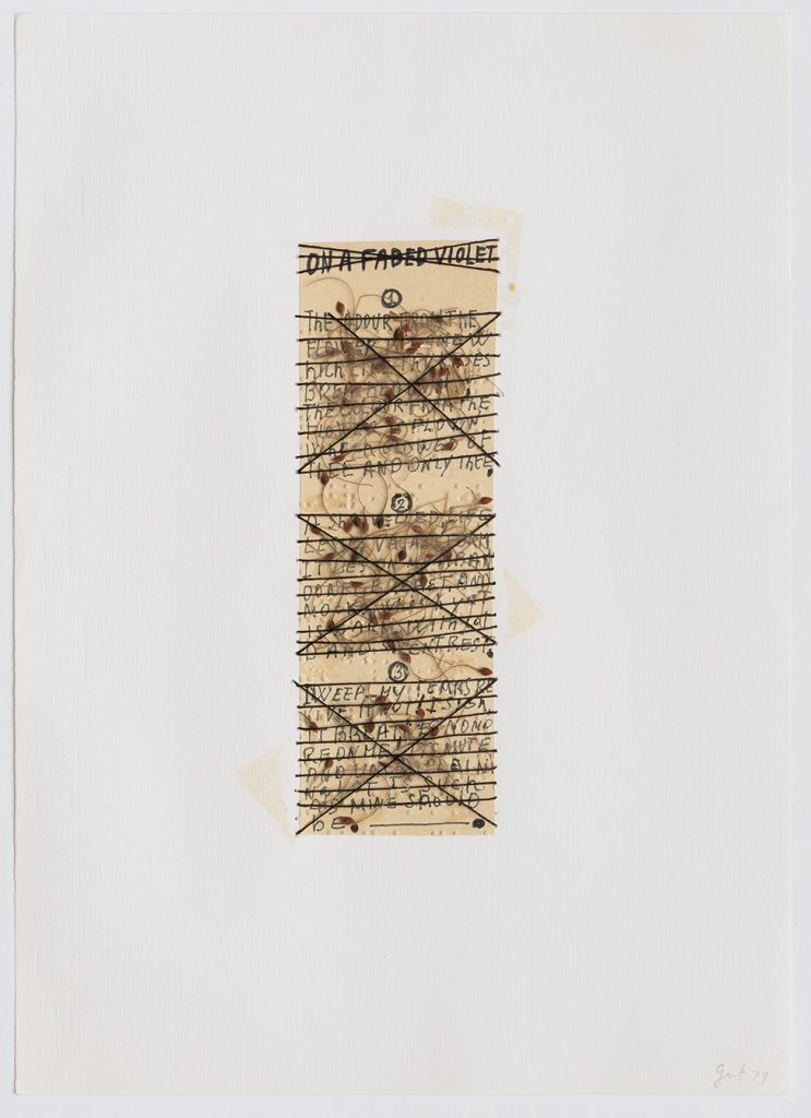 cruciali anni ‘70 e ‘80. Nedda Guidi, più nota per le opere in ceramica, nelle carte dei primi anni ‘70 elabora complessi giochi tra filo e segno, sfruttando anche le righe virtuali tracciate dall’ombra. Le sue geometrie, sempre conflittuali (come rivelano alcuni titoli, ad