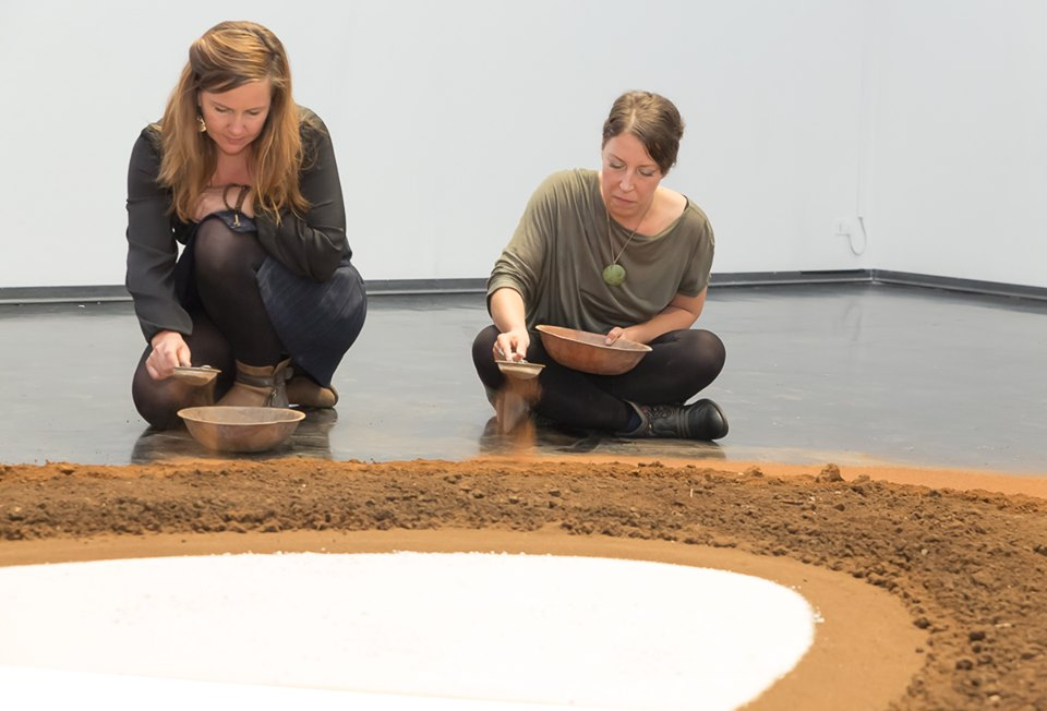 Imagine the Land Project è il frutto della collaborazione tra Ekarasa Doblanovic (Croazia/Nuova Zelanda) e Karma Barnes (Nuova Zelanda/Australia). Il progetto costruisce relazioni tra persone, arte e natura grazie a pratiche artistiche partecipatorie e installazioni non permanenti create con terre e sabbie. Le opere sono pensate appositamente per gli spazi espositivi e sono composte da pigmenti ottenuti dalla terra del luogo o di siti già sollecitati. Per più di 10 anni le artiste hanno lavorato con migliaia di persone di tutte le età nella creazione di opere d’arte collaborative ed ecologiche nell’ambito di programmi impegnati nel sociale e nella tutela dell’ambiente.