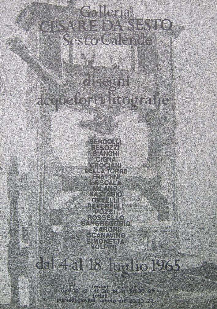 Scriveva Enrico Baj nel 1971 nella prefazione del catalogo di una mostra alla Galleria Pianella di Cantù: “..V’è una zona che da Milano porta a Varese e al Lago Maggiore dove i pittori sono di casa da sempre: è un itinerario che comincia a Saronno con gli angioli musicanti diretti da Gaudenzio Ferrari, passa per gli scavi di affreschi proto-cristiani a Castelseprio, arriva a Castiglione Olona celebre per i suoi nudi di Masolino, a Besozzo patria di Michelino, a Sesto Calende ove nacque Cesare da Sesto. Tutt’attorno, da Velate a Cannòbio, a Vergiate spingendosi sino ad Arona la plaga è ancora oggi piena di artisti: Guttuso, Fontana, Adami, San Gregorio, Fedeli, Vangi, Tavernari e altri ancora. Il capoluogo è oggi in un certo senso Sesto Calende e ciò per merito proprio di Ermanno Besozzi. Lui è li da sempre, ci è nato, ci sta di casa e ci lavora, dirige la società artistica locale, è un po’ il trait d’union tra tutti.”