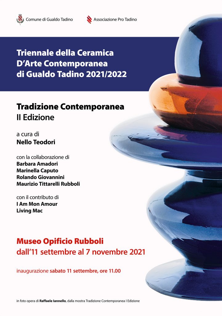 L’esposizione è una delle quattro sezioni della Triennale della Ceramica d’Arte Contemporanea di Gualdo Tadino 2021/2022 organizzata dall’Associazione Pro Tadino, presieduta da Carlo Giustiniani, e dall’Amministrazione comunale.