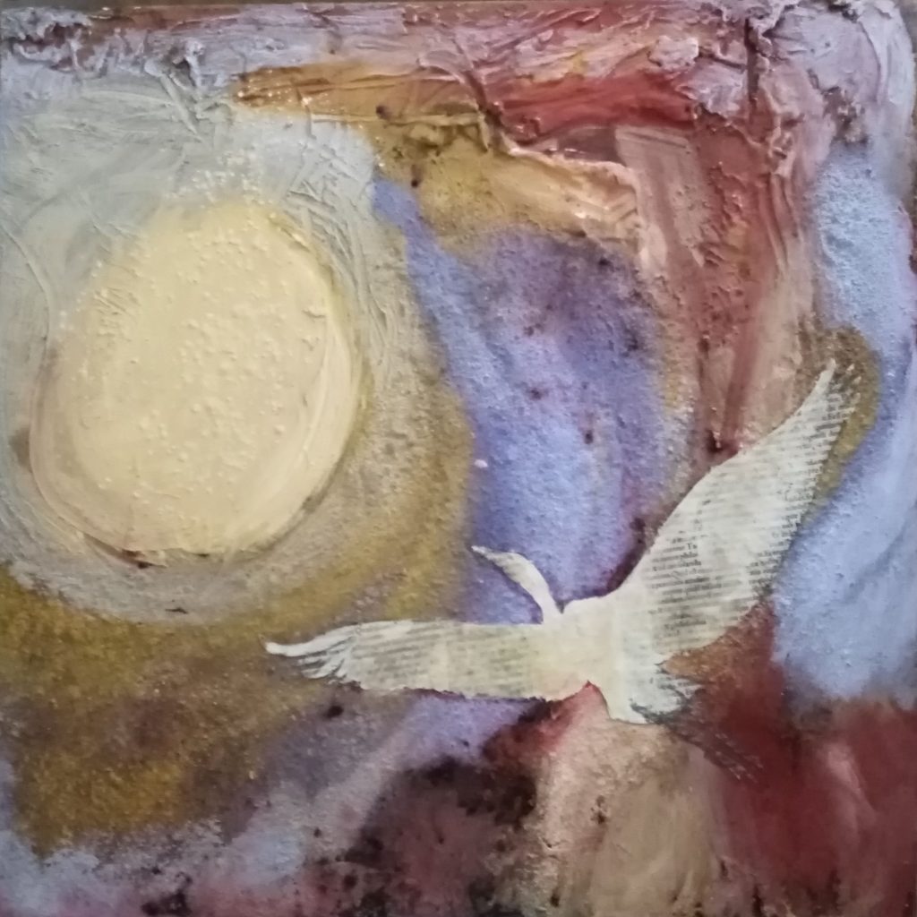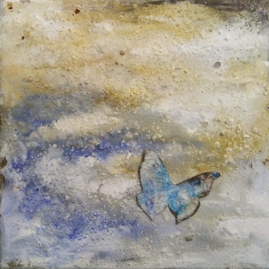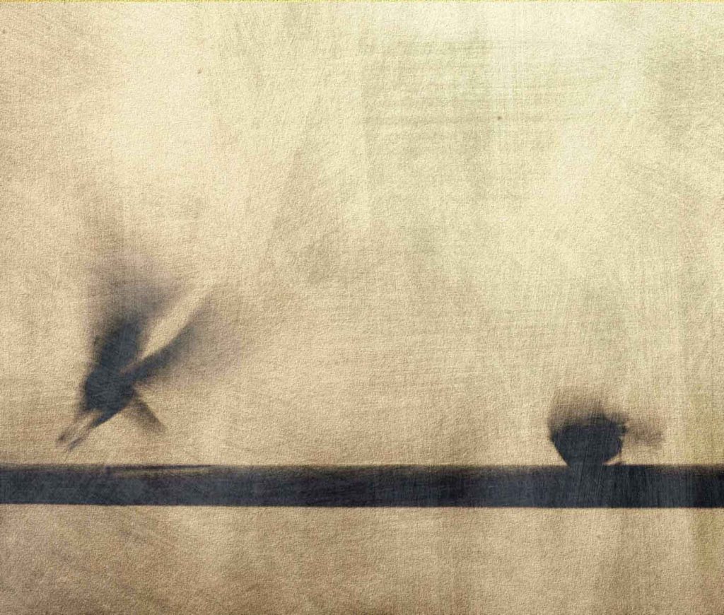 A confronto l’opera dell’artista e fotografa Valentina Carrera con quella dell’artista (e critico) Virgilio Patarini, con due personali parallele e incrociate di una ventina di opere ciascuna, quasi tutte di medio/piccolo formato, all’insegna di un’arte contemporanea che indaga i molti spunti metaforici e suggestivi che il tema del volo e delle visioni del cielo offrono, oscillando dall’astrazione lirica ed evanescente delle foto sfocate e mosse della Carrera fino all’informale materico che soggiace alle “epifanie” patariniane, in una accostamento di stili e atmosfere che si rivelano straordinariamente affini, pur nei mezzi differenti utilizzati, in una costante ricerca di un afflato poetico, un battito d’ala capace di trascendere il transeunte del quotidiano, tra una narrazione a tratti fiabesca come la pittura di questa serie di quadri di Patarini e la struggente nostalgia degli scatti della Carrera.