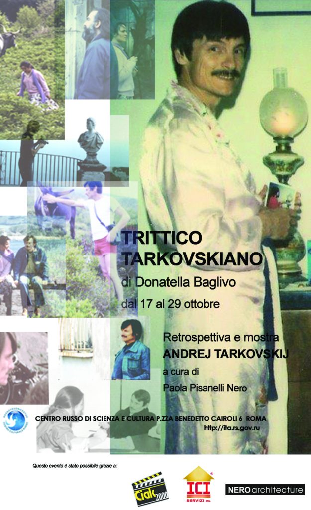 Centro Russo di Scienza e Cultura a Roma con sede a Palazzo Pasolini Dall’Onda ospiterà durante le giornate della Festa del Cinema di Roma, l’evento culturale TRITTICO TARKOSKVIANO di Donatella Baglivo, una retrospettiva ed una mostra curata da Paola Pisanelli Nero per ricordare uno dei più grandi maestri dell’arte cinematografica :Andrej Tarkoskvij