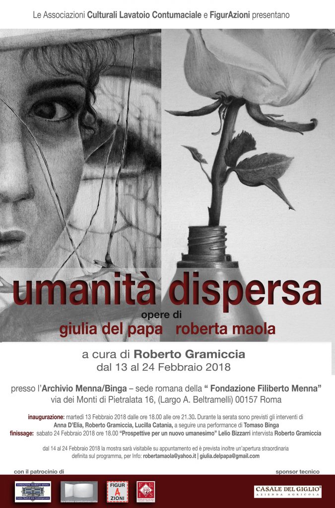 finissage: sabato 24 Febbraio 2018 ore 18.00 “Prospettive per un nuovo umanesimo” Lelio Bizzarri intervista Roberto Gramiccia