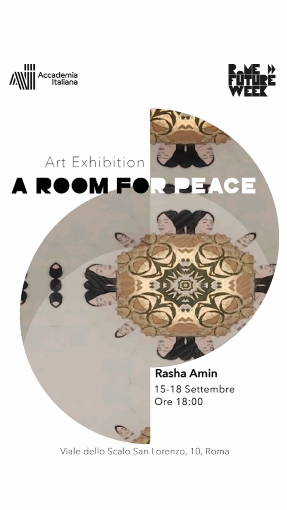 Una Stanza per la Pace è un’installazione artistica immersiva e multisensoriale realizzata dall’artista Rasha Amin, presentata nell’ambito della Rome Future Week. La mostra esplora la pace come risposta artistica alla violenza e al caos delle guerre, utilizzando il mondo naturale come metafora di rifugio, rinnovamento ed equilibrio.Le opere in esposizione approfondiscono la connessione naturale dell’umanità con la natura, presentando figure nascoste che rappresentano vulnerabilità e resilienza, fondendosi armoniosamente con i ritmi naturali del nostro pianeta. In questo spazio tra quiete e mistero, le opere invitano lo spettatore a riflettere sui tempi del caos e sul desiderio dell’artista di abbracciare armonia e pace interiore.