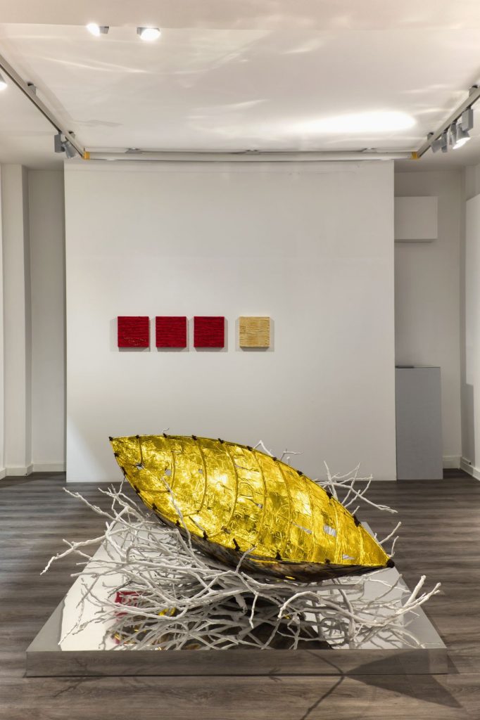 MODICA (Rg), 1 ottobre 2022– Una barca primordiale nella notte buia del Mediterraneo affidata all’onda madre, il movimento naturale del mare che, insieme al vento, ha guidato da millenni l’Uomo nel viaggio verso l’ignoto: terre sconosciute, nuovi popoli, culture “altre”, spesso anche approdi di pace. È un guscio di lamiera dall’anima sfavillante – ed eloquente – dell’oro di una coperta termica l’installazione di Sandro Bracchitta che introduce la mostra “Unda Mater” allestita a Modica, negli spazi di Lo Magno artecontmeporanea dal 1 ottobre al 19 novembre 2022, a cura di Giuseppe Lo Magno e Niccolò Nisivoccia.