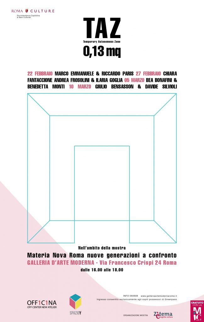Untitled, (Embryo), intervento artistico di Bea Bonafini si colloca all'interno della programmazione di TAZ 0.13mq, progetto a cura di Officina, nel contesto della mostra Materia Nova, alla Galleria d’Arte Moderna in Via Francesco Crispi 24, Roma.