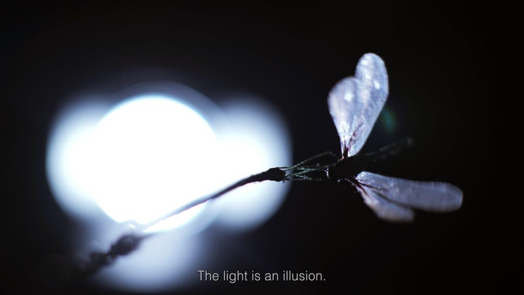 Vedere al buio è la mostra di conclusione della ricerca svolta da Driant Zeneli nell’ambito di Waiting Room Residency, residenza che approfondisce la relazione fra arte e psicoanalisi a cura di Giusi Campisi e Sara d’Alessandro Manozzo e realizzata in collaborazione con il Centro di Clinica Psicoanalitica Jonas di Trento. Il nucleo centrale della mostra è infatti costituito dal video VR Lo Struzzo e la Farfalla, prima produzione in VR di Zeneli, fruibile su visore e prodotto grazie al sostegno di Connected Reality, Bolzano. L’opera nasce da una serie di “sedute”, conversazioni singole fra Zeneli e gli psicoanalisti del team di Jonas; giocando sul ribaltamento dei ruoli fra paziente e analista, l’artista ha costruito con ciascuno di loro una storia differente, con protagonisti due animali. Accanto all’opera in VR, nelle sale del Centro di Psicoanalisi Jonas Zeneli ricrea un mondo