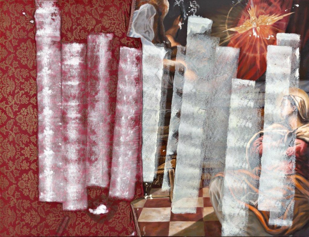 Il pittore spagnolo questa volta ha scelto di rivisitare sette capolavori del Maestro del Rinascimento veneziano che raffigurano altrettanti momenti paradigmatici della vita terrena della Vergine Maria: Annunciazione, Fuga in Egitto, Strage degli Innocenti, Maria in meditazione, Maria Egiziaca, Crocifissione, Assunzione.