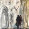 Le pennellate eseguite velocemente e istintive per fissare al meglio la luce tra le colonne in sprazzi di colore non preparato sono la firma dell’artista nelle opere d’arte.