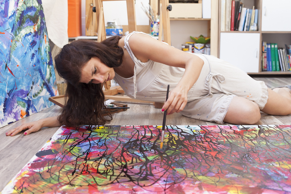 En plein air, ritratti con modelle dal vero, pittura figurativa, pittura informale astratta, d'azione.