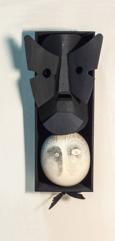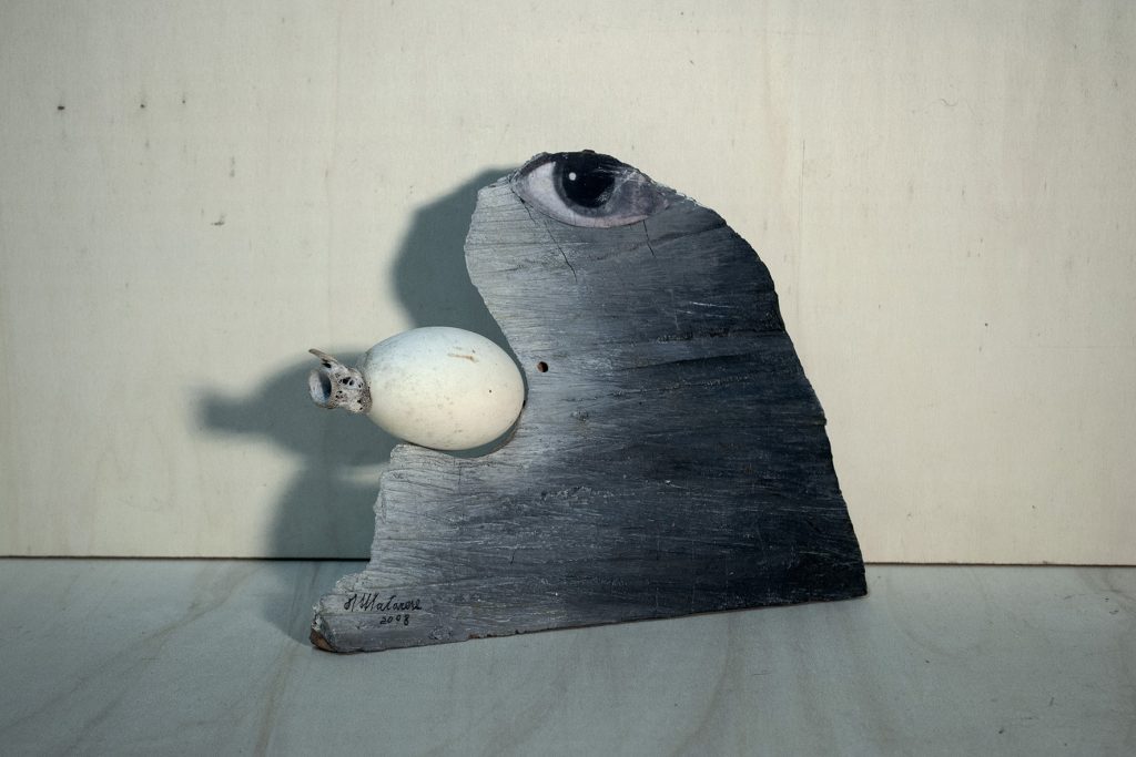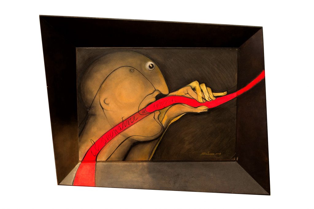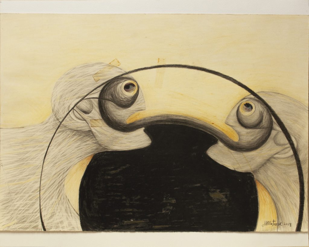 Si è scelto di esporre opere di piccolo formato, che si pongono come prelibati assaggi del suo fare artistico.Ritroviamo i suoi "pratascabili" e le "Carte antiche". Seguendo tecniche di ispirazione surrealista,Matarese realizza volti scarni , ancestrali, caratterizzati dal tipico sberleffo, ironico, dissacrante. E poi le creazioni nate durante la pandemia, assemblando materiali di scarto, maschere antigas, ossi, legni bruciati, sono le "sculture da comodino", maquettes per veri monumenti.