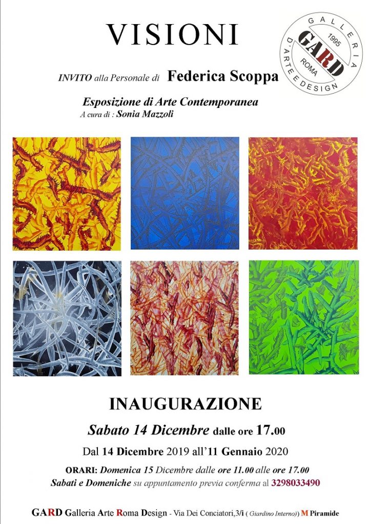 La GARD Galleria Arte Roma Design presenta con estremo piacere, l’esposizione personale dell’Artista Federica Scoppa, che racchiude alcuni filoni del suo lavoro artistico, una selezione tra le opere più significative della serie Intrecci a testimonianza di un percorso artistico che è frutto di anni di creatività, sperimentazione e tecnica.