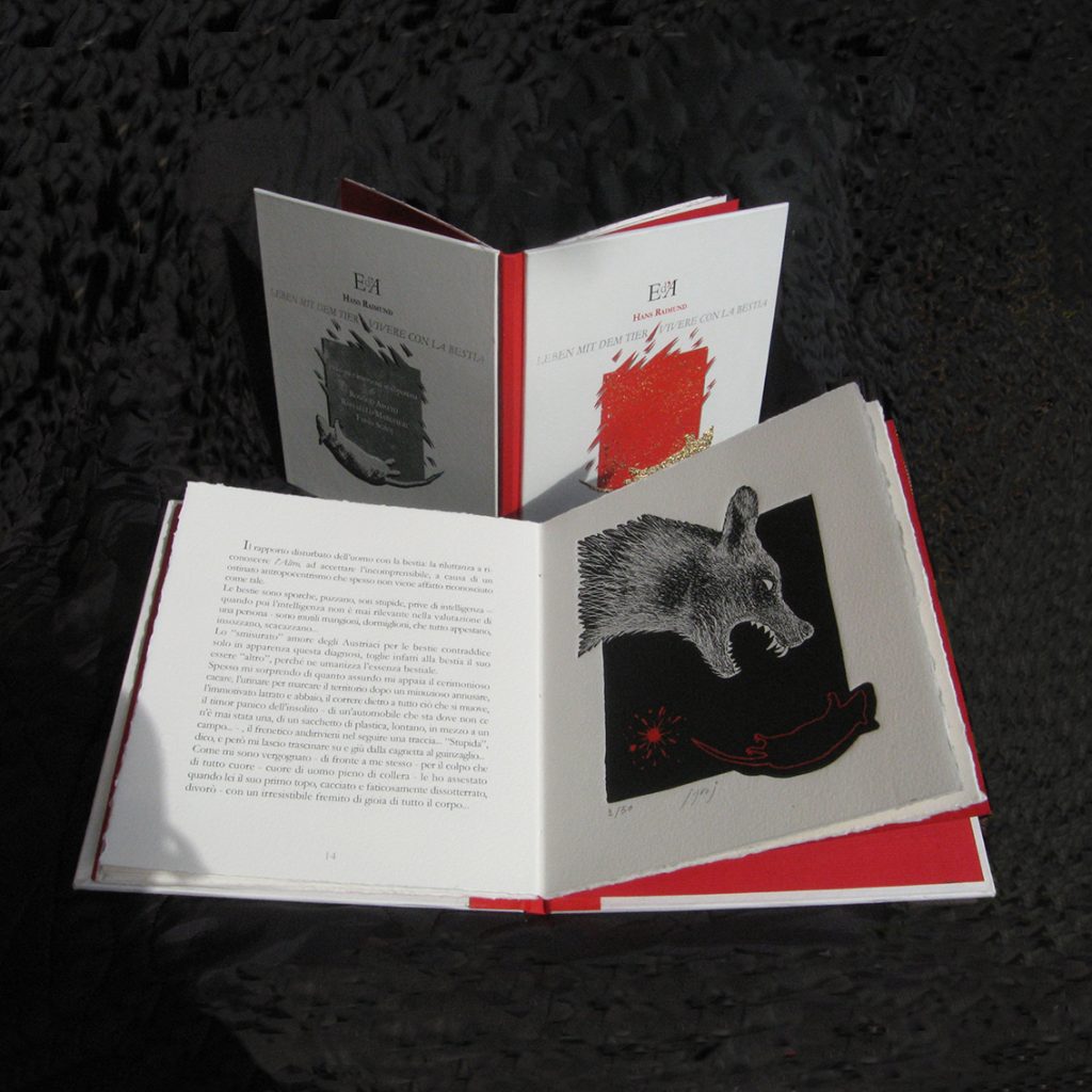 Presentazione della plaquette "Vivere con la Bestia" pubblicata dalle "Edizioni dell'Angelo" con testi in lingua originale del poeta austriaco Hans Raimund, tradotto in italiano da Augusto Fenice e illustrati con incisioni originali da Rosario Amato, Raffaello Margheri e Fabio Sgroj.