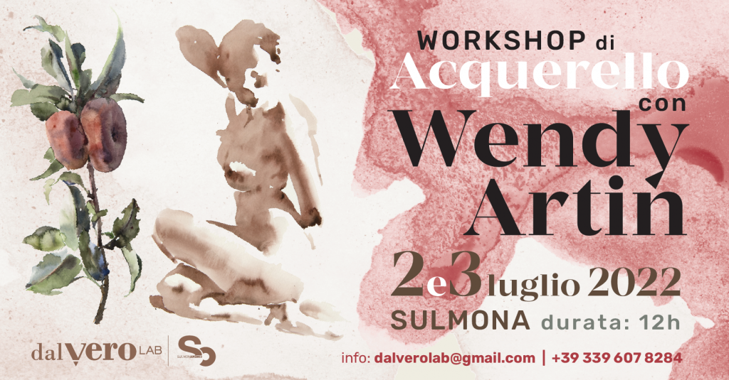 La nota artista americana Wendy Artin, da anni residente in Italia, terrà un workshop intensivo di due giorni, articolato in dodici ore, per amanti dell'acquerello, dai principianti fino agli avanzati. Il programma è diviso in due parti, entrambe basate sull'osservazione di modelli e oggetti dal vero: una dedicata allo studio della figura umana e l'altra alla raffigurazione della natura morta.