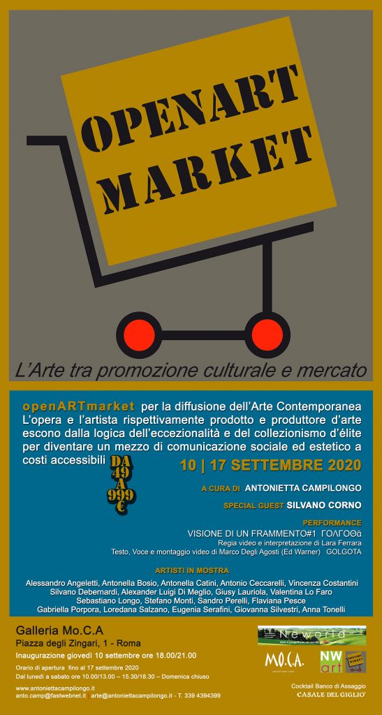 Si inaugura giovedì 10 settembre 2020 alle ore 18.00 un nuovo appuntamento, il XXIV, di OpenARTmarket, progetto a cura di Antonietta Campilongo, fino al 17 settembre, presso la Galleria Mo.C.A. – Piazza degli Zingari, 1 - Roma